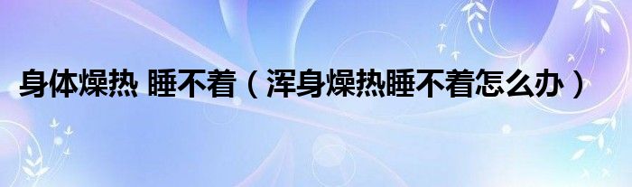 大家好,linda来为大家解答以上的问题。身体燥热 睡不着,浑身燥热睡不着怎么办很多人还不知道,现在让我们一起来看看吧!