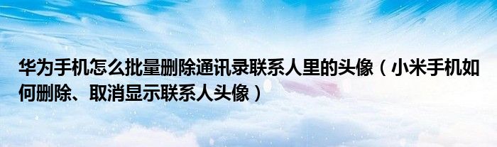 大家好,今天小悦来为大家解答以上问题。华为手机怎么批量删除通讯录联系人里的头像,小米手机如何删除、取消显示联系人头像很多人还不知道,现在让我们一起来看看吧!