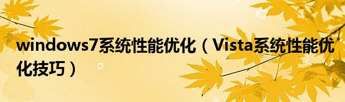大家好,今天小悦来为大家解答以上问题。windows7系统性能优化,Vista系统性能优化技巧很多人还不知道,现在让我们一起来看看吧!