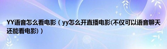 大家好,今天小悦来为大家解答以上问题。YY语音怎么看电影,yy怎么开直播电影(不仅可以语音聊天还能看电影)很多人还不知道,现在让我们一起来看看吧!