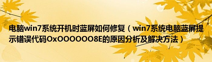 大家好,今天小悦来为大家解答以上问题。电脑win7系统开机时蓝屏如何修复,win7系统电脑蓝屏提示错误代码OxOOOOOO8E的原因分析及解决方法很多人还不知道,现在让我们一起来看看吧!