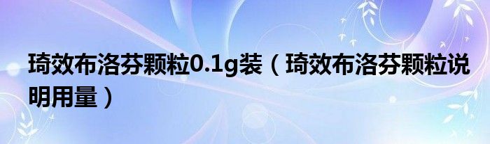大家好,linda来为大家解答以上的问题。琦效布洛芬颗粒0.1g装,琦效布洛芬颗粒说明用量很多人还不知道,现在让我们一起来看看吧!