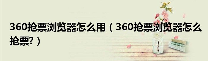 大家好,今天小悦来为大家解答以上问题。360抢票浏览器怎么用,360抢票浏览器怎么抢票?很多人还不知道,现在让我们一起来看看吧!