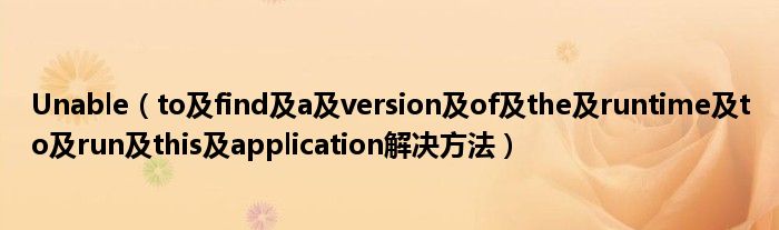 大家好,小太来为大家解答以上问题。Unable,to及find及a及version及of及the及runtime及to及run及this及application解决方法很多人还不知道,现在让我们一起来看看吧!