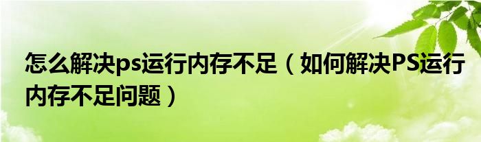 大家好,小太来为大家解答以上问题。怎么解决ps运行内存不足,如何解决PS运行内存不足问题很多人还不知道,现在让我们一起来看看吧!