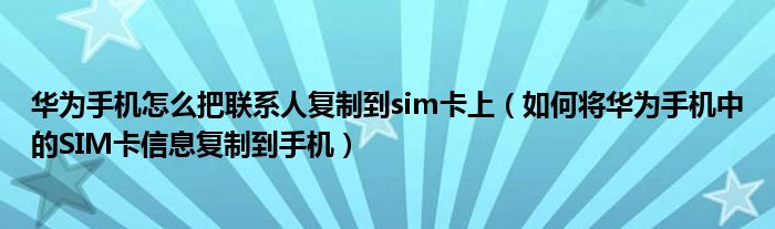 大家好,小太来为大家解答以上问题。华为手机怎么把联系人复制到sim卡上,如何将华为手机中的SIM卡信息复制到手机很多人还不知道,现在让我们一起来看看吧!