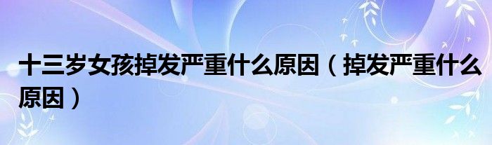 大家好,linda来为大家解答以上的问题。十三岁女孩掉发严重什么原因,掉发严重什么原因很多人还不知道,现在让我们一起来看看吧!