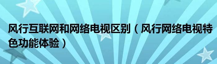 大家好,小太来为大家解答以上问题。风行互联网和网络电视区别,风行网络电视特色功能体验很多人还不知道,现在让我们一起来看看吧!
