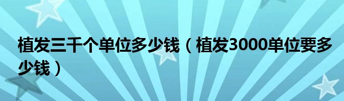 大家好,linda来为大家解答以上的问题。植发三千个单位多少钱,植发3000单位要多少钱很多人还不知道,现在让我们一起来看看吧!