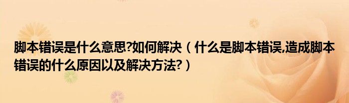 大家好,小太来为大家解答以上问题。脚本错误是什么意思?如何解决,什么是脚本错误,造成脚本错误的什么原因以及解决方法?很多人还不知道,现在让我们一起来看看吧!