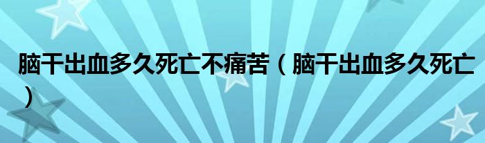 大家好,linda来为大家解答以上的问题。脑干出血多久死亡不痛苦,脑干出血多久死亡很多人还不知道,现在让我们一起来看看吧!