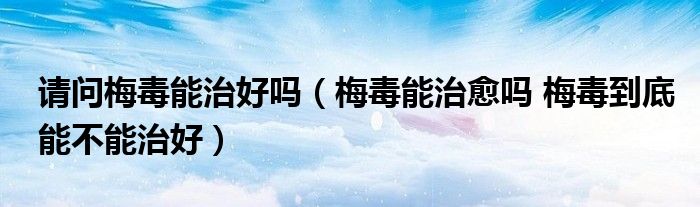 大家好,linda来为大家解答以上的问题。请问梅毒能治好吗,梅毒能治愈吗 梅毒到底能不能治好很多人还不知道,现在让我们一起来看看吧!