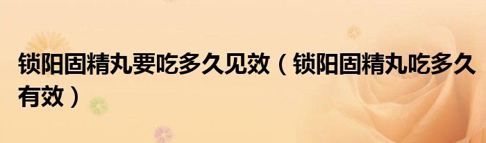 大家好,linda来为大家解答以上的问题。锁阳固精丸要吃多久见效,锁阳固精丸吃多久有效很多人还不知道,现在让我们一起来看看吧!