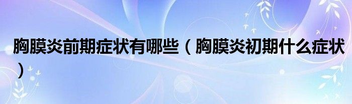 大家好,linda来为大家解答以上的问题。胸膜炎前期症状有哪些,胸膜炎初期什么症状很多人还不知道,现在让我们一起来看看吧!