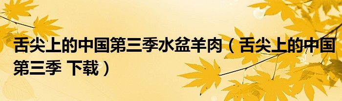 大家好,雨雨来为大家解答以上问题,舌尖上的中国第三季水盆羊肉,舌尖上的中国第三季 下载很多人还不知道,现在让我们一起来看看吧!