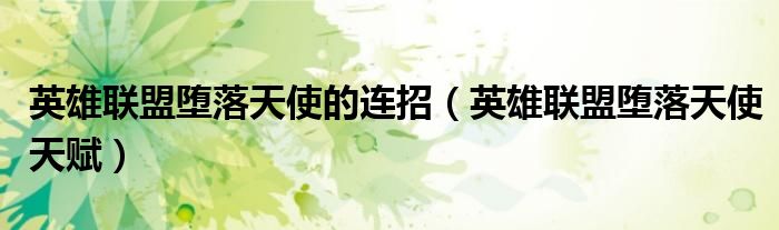 大家好,雨雨来为大家解答以上问题,英雄联盟堕落天使的连招,英雄联盟堕落天使天赋很多人还不知道,现在让我们一起来看看吧!