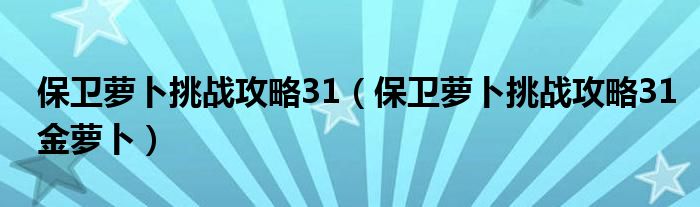 大家好,雨雨来为大家解答以上问题,保卫萝卜挑战攻略31,保卫萝卜挑战攻略31金萝卜很多人还不知道,现在让我们一起来看看吧!