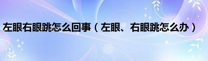 1、左眼跳和右眼跳的原因很多,具体的治疗方法也不一样。