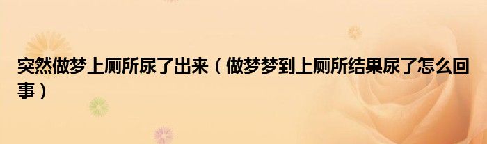大家好,linda来为大家解答以上的问题。突然做梦上厕所尿了出来,做梦梦到上厕所结果尿了怎么回事很多人还不知道,现在让我们一起来看看吧!