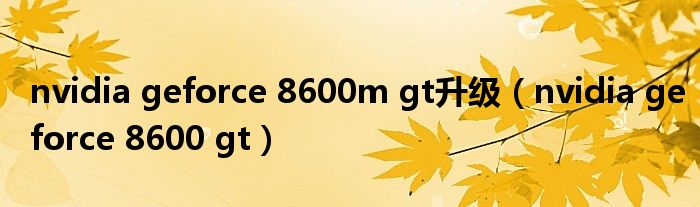 大家好,雨雨来为大家解答以上问题,nvidia geforce 8600m gt升级,nvidia geforce 8600 gt很多人还不知道,现在让我们一起来看看吧!