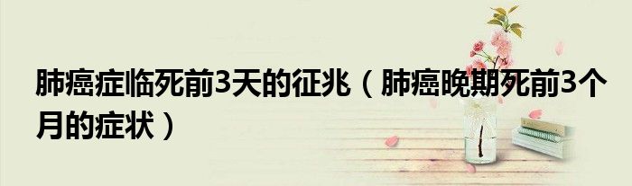 大家好,linda来为大家解答以上的问题。肺癌症临死前3天的征兆,肺癌晚期死前3个月的症状很多人还不知道,现在让我们一起来看看吧!