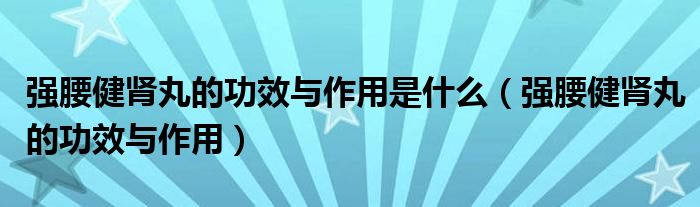 大家好,linda来为大家解答以上的问题。强腰健肾丸的功效与作用是什么,强腰健肾丸的功效与作用很多人还不知道,现在让我们一起来看看吧!