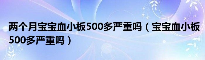 大家好,linda来为大家解答以上的问题。两个月宝宝血小板500多严重吗,宝宝血小板500多严重吗很多人还不知道,现在让我们一起来看看吧!