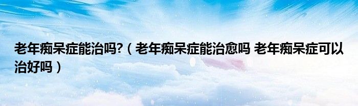 大家好,linda来为大家解答以上的问题。老年痴呆症能治吗?,老年痴呆症能治愈吗 老年痴呆症可以治好吗很多人还不知道,现在让我们一起来看看吧!