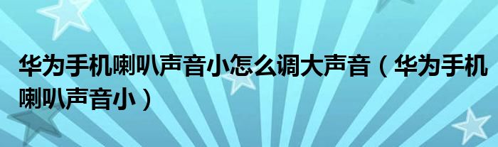 大家好,小晋来为大家解答以下问题,关于华为手机喇叭声音小怎么调大声音,华为手机喇叭声音小很多人还不知道,今天让我们一起来看看吧!