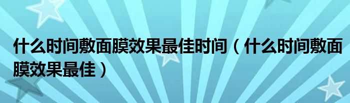 大家好,linda来为大家解答以上的问题。什么时间敷面膜效果最佳时间,什么时间敷面膜效果最佳很多人还不知道,现在让我们一起来看看吧!