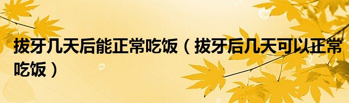 大家好,linda来为大家解答以上的问题。拔牙几天后能正常吃饭,拔牙后几天可以正常吃饭很多人还不知道,现在让我们一起来看看吧!
