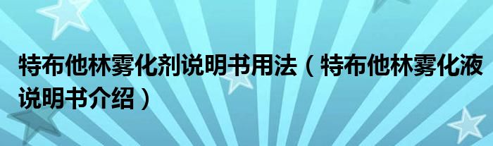 大家好,linda来为大家解答以上的问题。特布他林雾化剂说明书用法,特布他林雾化液说明书介绍很多人还不知道,现在让我们一起来看看吧!