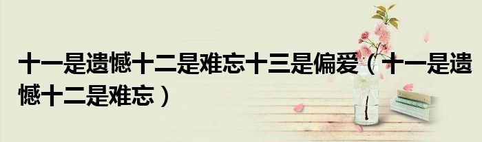 大家好,小晋来为大家解答以下问题,关于十一是遗憾十二是难忘十三是偏爱,十一是遗憾十二是难忘很多人还不知道,今天让我们一起来看看吧!