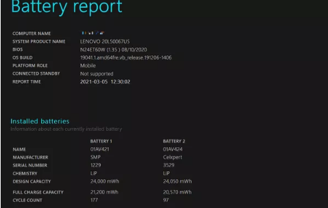 这将运行powerconfig工具,并告诉它吐出一个电池报告,该报告现在应该以HTML文件的形式放在您的桌面上。