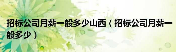 大家好,小晋来为大家解答以下问题,关于招标公司月薪一般多少山西,招标公司月薪一般多少很多人还不知道,今天让我们一起来看看吧!