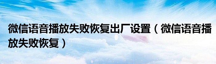大家好,小晋来为大家解答以下问题,关于微信语音播放失败恢复出厂设置,微信语音播放失败恢复很多人还不知道,今天让我们一起来看看吧!