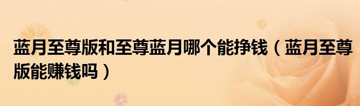 大家好,小晋来为大家解答以下问题,关于蓝月至尊版和至尊蓝月哪个能挣钱,蓝月至尊版能赚钱吗很多人还不知道,今天让我们一起来看看吧!