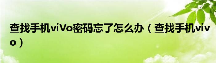 大家好,小晋来为大家解答以下问题,关于查找手机viVo密码忘了怎么办,查找手机vivo很多人还不知道,今天让我们一起来看看吧!