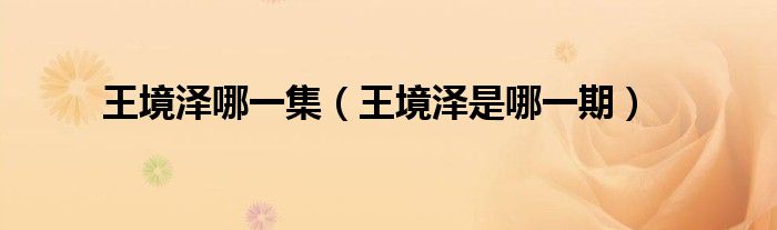 大家好,小晋来为大家解答以下问题,关于王境泽哪一集,王境泽是哪一期很多人还不知道,今天让我们一起来看看吧!