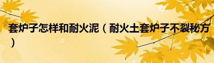 大家好,小晋来为大家解答以下问题,关于套炉子怎样和耐火泥,耐火土套炉子不裂秘方很多人还不知道,今天让我们一起来看看吧!