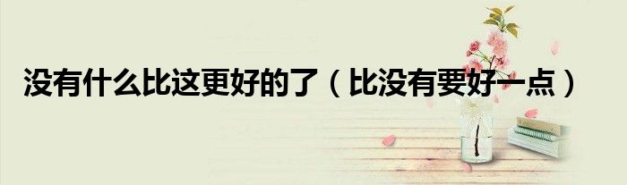 大家好,小晋来为大家解答以下问题,关于没有什么比这更好的了,比没有要好一点很多人还不知道,今天让我们一起来看看吧!