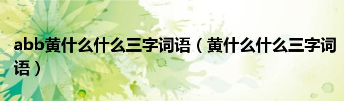 大家好,小晋来为大家解答以下问题,关于abb黄什么什么三字词语,黄什么什么三字词语很多人还不知道,今天让我们一起来看看吧!