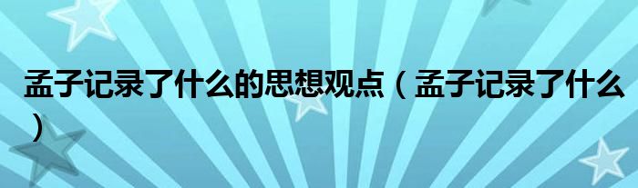 大家好,小晋来为大家解答以下问题,关于孟子记录了什么的思想观点,孟子记录了什么很多人还不知道,今天让我们一起来看看吧!