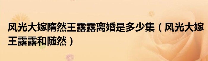 大家好,小晋来为大家解答以下问题,关于风光大嫁隋然王露露离婚是多少集,风光大嫁王露露和随然很多人还不知道,今天让我们一起来看看吧!