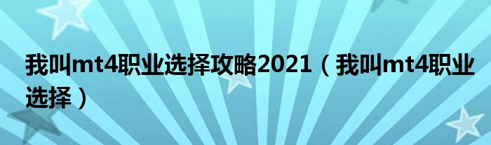 我叫mt4职业选择攻略2021(我叫mt4职业选择)
