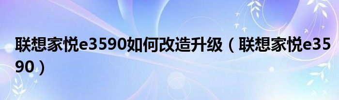 联想家悦e3590如何改造升级,联想家悦e3590很多人还不知道,乐乐来为大家解答以上问题,现在让我们一起来看看吧!