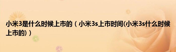 大家好,小常来为大家解答以上问题。小米3是什么时候上市的,小米3s上市时间(小米3s什么时候上市的)很多人还不知道,现在让我们一起来看看吧!