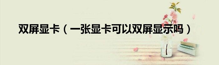 大部分显卡是支持双屏或者多屏输出的,只有小部分显卡视频输接口不支持。 1.看显卡的性能支不支持双屏或者多屏输出 2.不同的显卡有不同的显示输出口,常见的有VGA,DVI,HDMI 3. 双屏显示就是利用一个双头输出的显卡接两个显示器 4. 显卡双头输出,一个VGA一个 DVI,两个DVI或者是一个DVI一个HDMI。接一个 显示器时,只用VGA或DVI(根据显示器的接口类型不同)接双显示器时,将两个显示器分别 接到显卡的VGA和DVI上,若显示器无DVI输入,可以 用DVI转VGA转接头,将显卡的DVI转为VGA5.显卡支持双屏输出的同时看一下显卡是否支持转接,如有些显卡不支持转接VGA,不支持双VGA输出