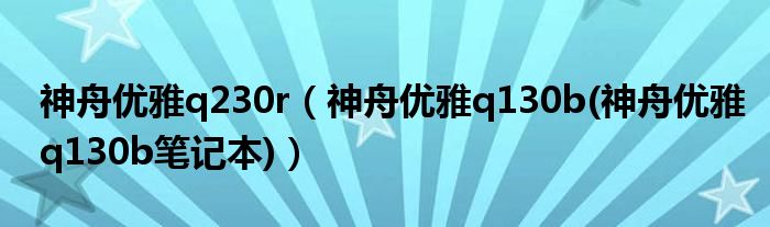 大家好,小常来为大家解答以上问题。神舟优雅q230r,神舟优雅q130b(神舟优雅q130b笔记本)很多人还不知道,现在让我们一起来看看吧!