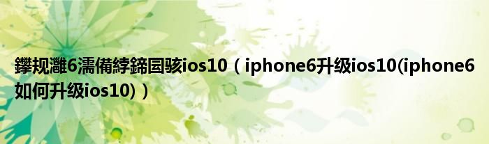 大家好,小常来为大家解答以上问题。鑻规灉6濡備綍鍗囩骇ios10,iphone6升级ios10(iphone6如何升级ios10)很多人还不知道,现在让我们一起来看看吧!
